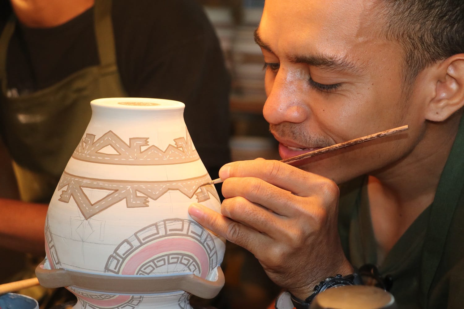 Now, the original four trainee potters have mastered their art, they are passing on the skills that they have perfected to other students. Aderito De Jesus dropped out of school and was convinced he had no future. Now he is a trainer and has also started to learn English. “Painting motivates and inspires me and painting this local pottery I am able to express my feeling to others. I love painting because through painting I am promoting my country. In this way I believe my contribution as a Timorese will contribute to the development of tourism in Timor Leste, he explained.